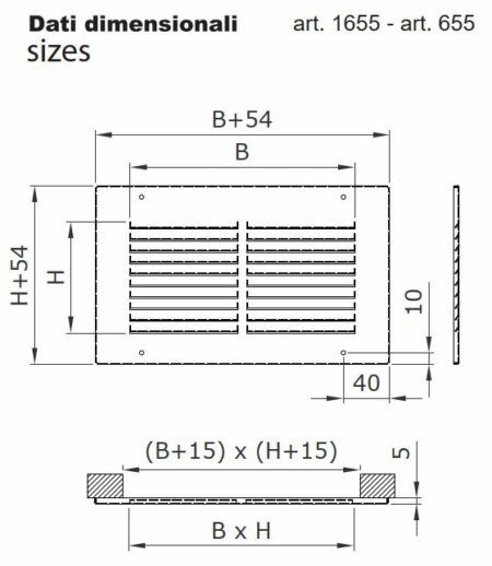 Griglia stampata quadrata da appoggio in alluminio o acciaio 100×100 mm. Griglia di aerazione quadrata da sovrapporre. Materiale: acciaio grezzo. Finiture: Verniciato Bianco RAL 9016: +20%. Altri colori: prezzi a richiesta. Fissaggio: viti a vista. Passaggio aria (cm2): 69. Accessori: retina antinsetti alluminio (+20%).