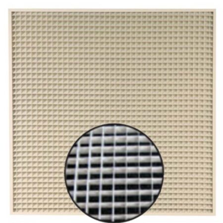 Griglia di ripresa 600×600 mm a maglia inclinata per controsoffitti modulari.