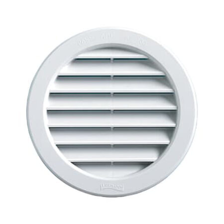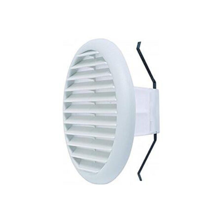 Griglia tonda in plastica da incasso con anello fisso Ø 80 mm. Griglia tonda di aerazione da incasso con retina antinsetti. Materiale: plastica (ABS). Retina antinsetti in alluminio. Finitura: colore bianco. Fissaggio: ad incasso. Diametro esterno griglia (mm): dE 105. Passaggio aria (cm2): 32.